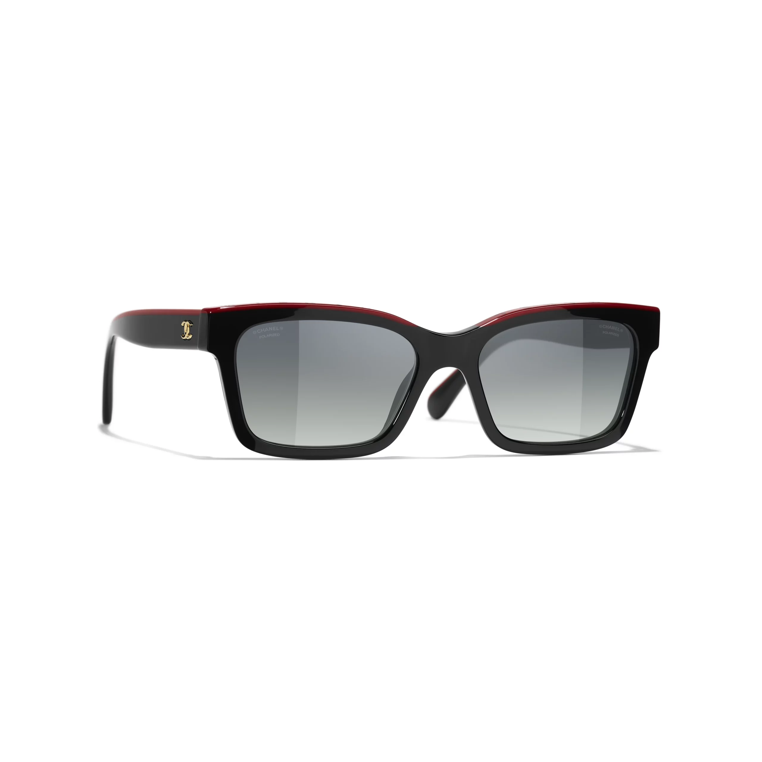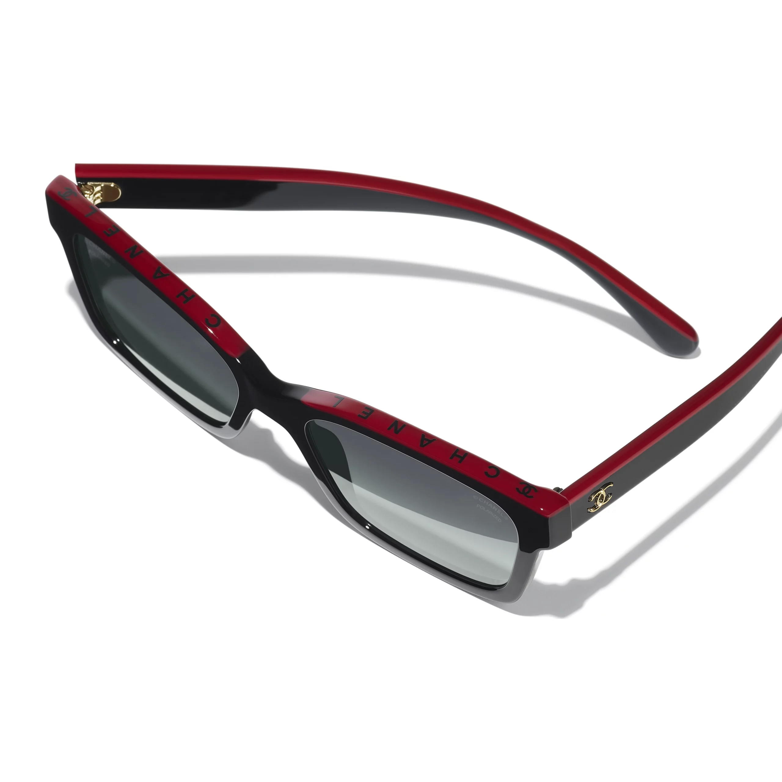 Channel Square Sunglasses – Noir et rouge. Verres : gris, polarisés, dégradés