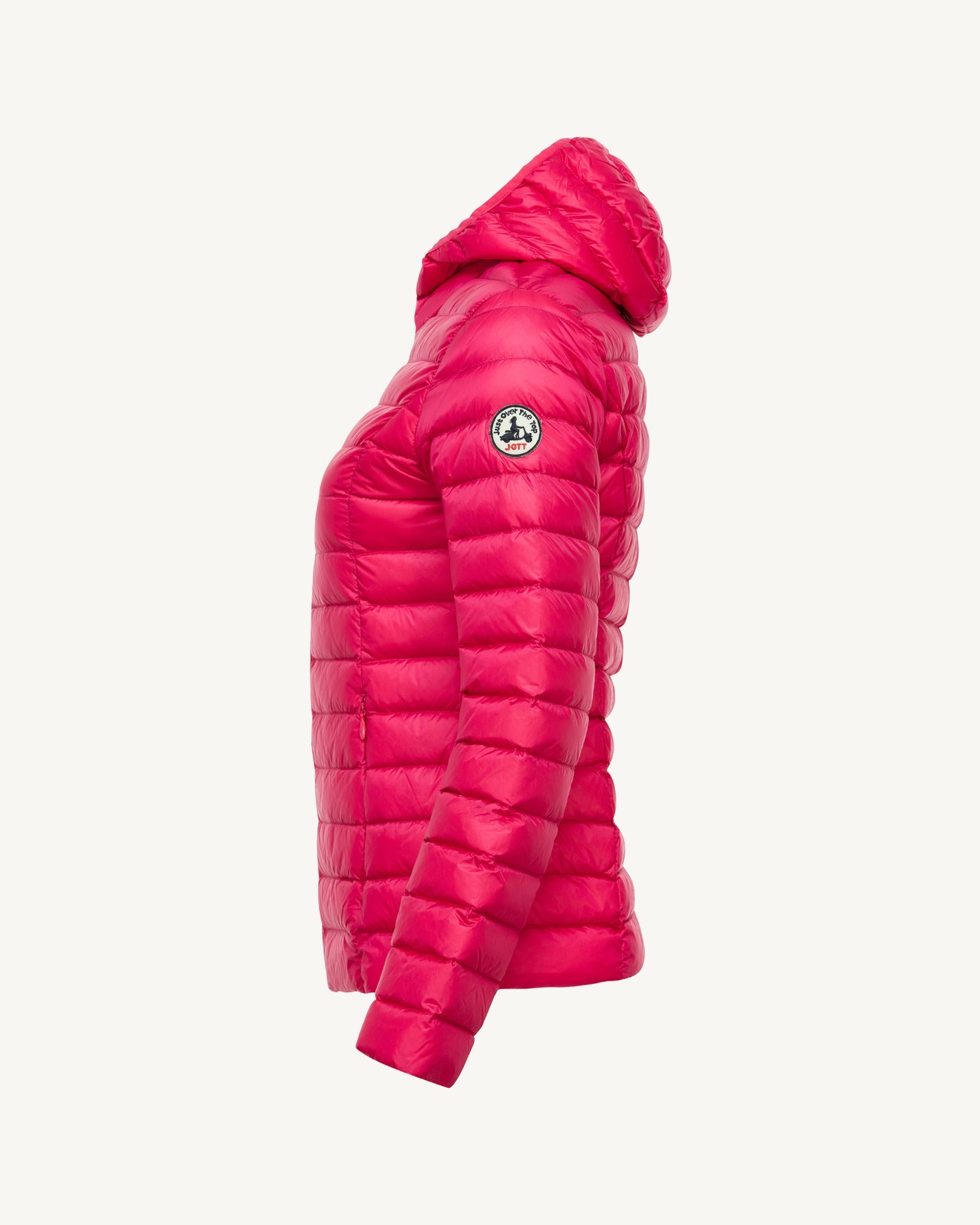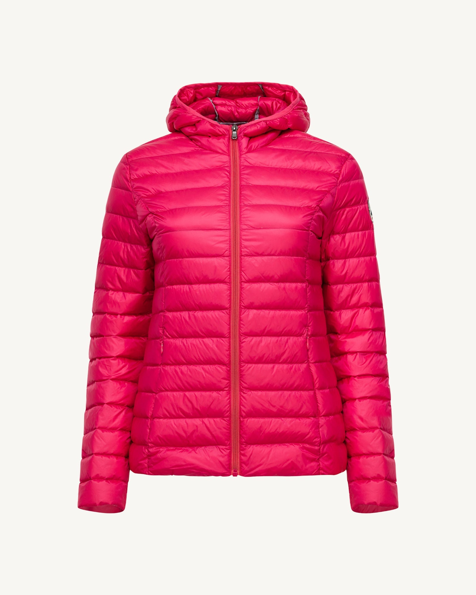 La doudoune CLOE, un modèle iconique à capuche. Vous aimerez sa ligne féminine ajustée, ses poches latérales zippées invisibles, son tissu déperlant et son matelassage léger mais bien chaud en plumes et duvet.