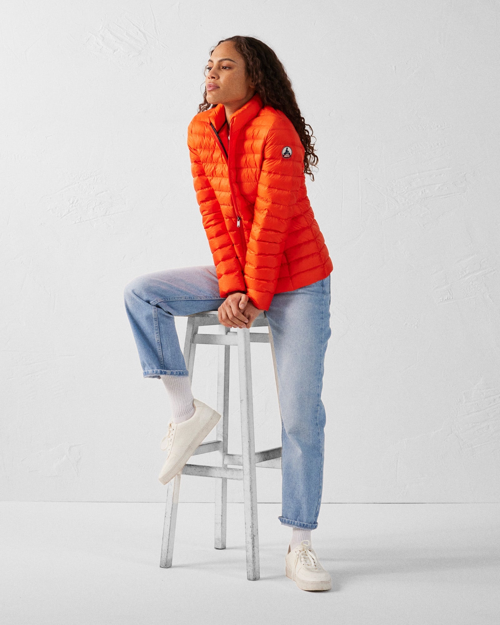 Modèle disponible en douze coloris Printemps/Ete 2025 et dans les six coloris permanents de la collection JOTT. Modèle avec capuche : CLOE – Modèle sans manches : SEDA – Équivalent homme : MAT