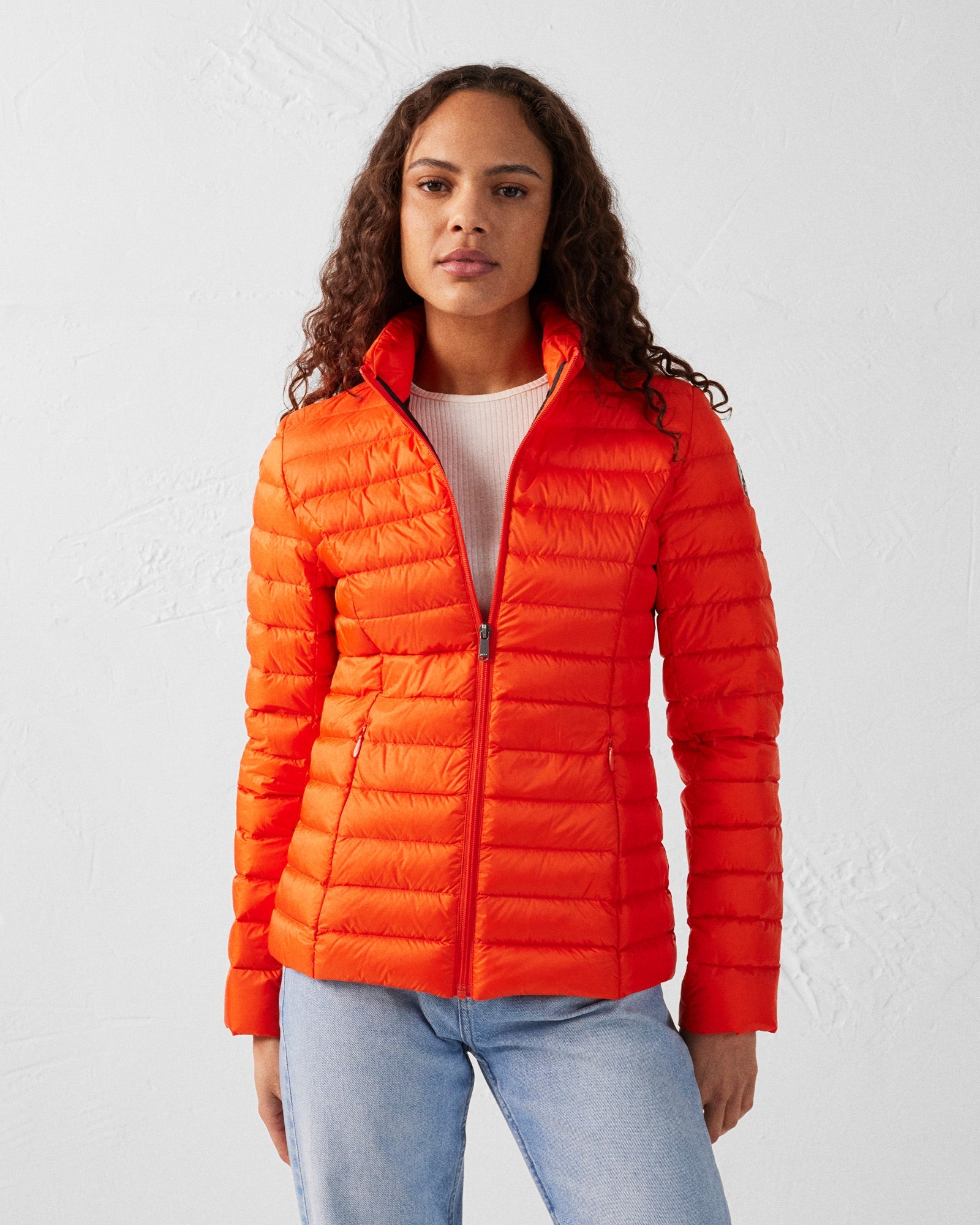 Sans capuche, légère et près du corps grâce à sa coupe cintrée, la doudoune CHA joue les vedettes, portée seule, mais sait aussi se faire discrète sous votre manteau préféré.