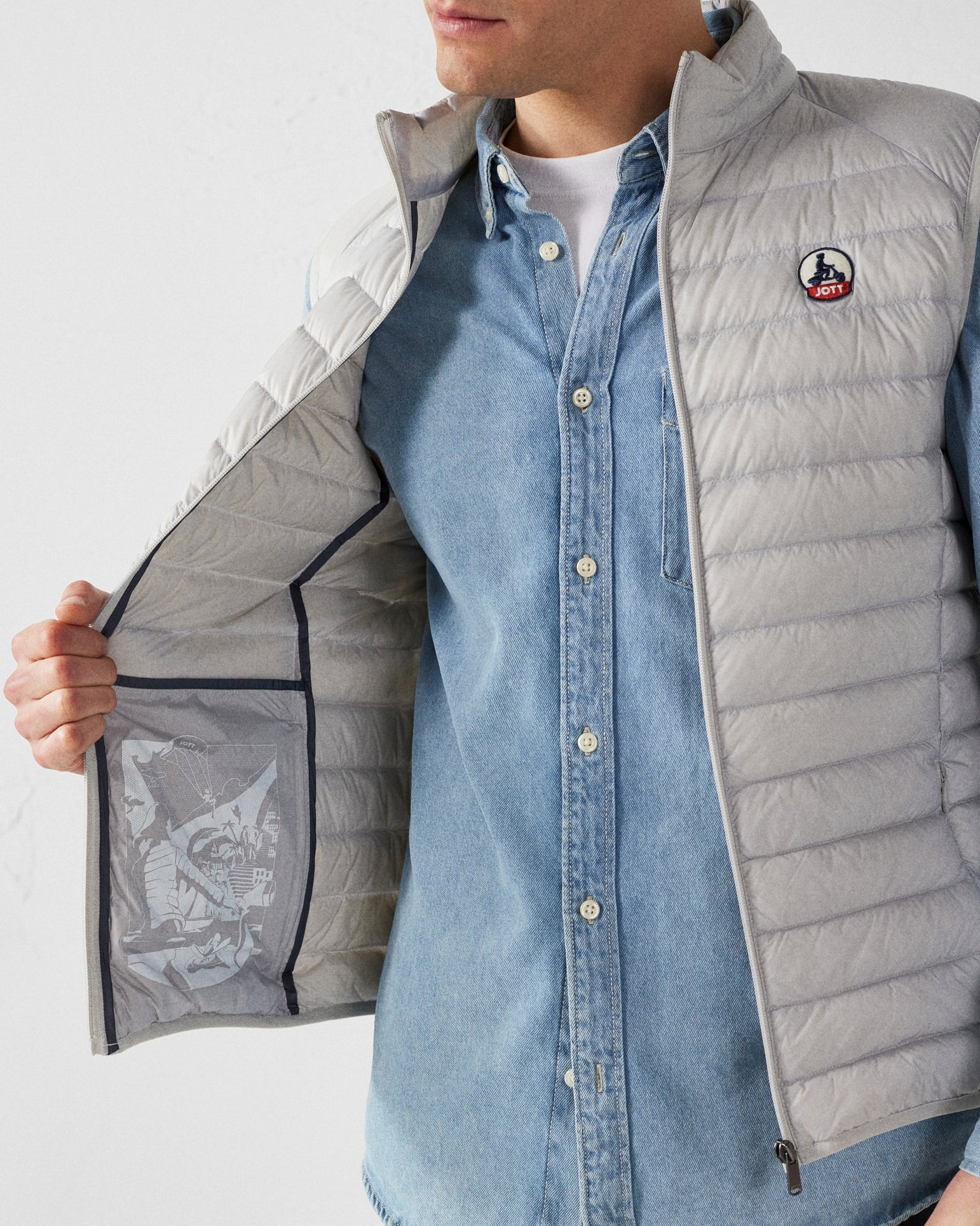 TOM, la doudoune légère sans manches iconique à petit col montant. Un must have à glisser sous toutes les vestes.