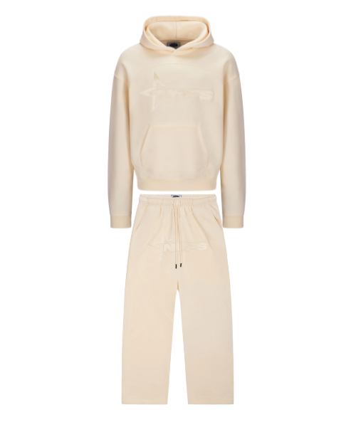 • BRODERIE « NOFS » EN RELIEF SUR LA POITRINE ET SUR LE DEVANT DU PANTALON.