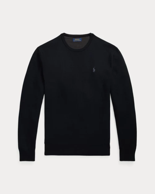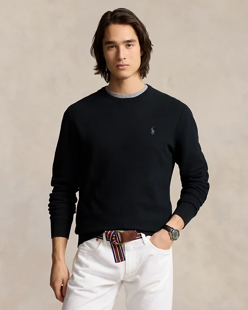 Pull à col rond en coton piqué – Noir Polo/Ton sur ton
