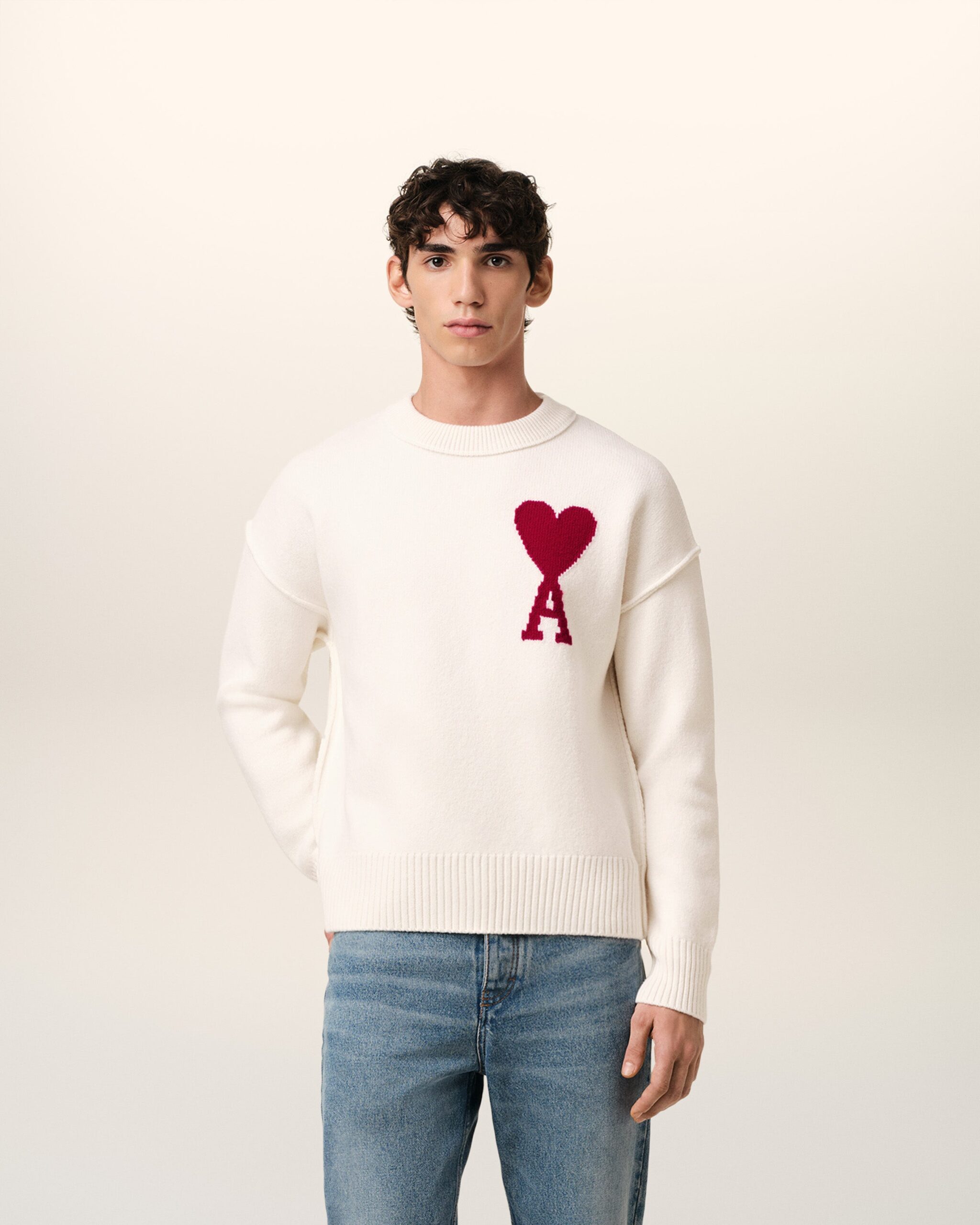 Tricot intarsia Ami de Coeur rouge sur la poitrine