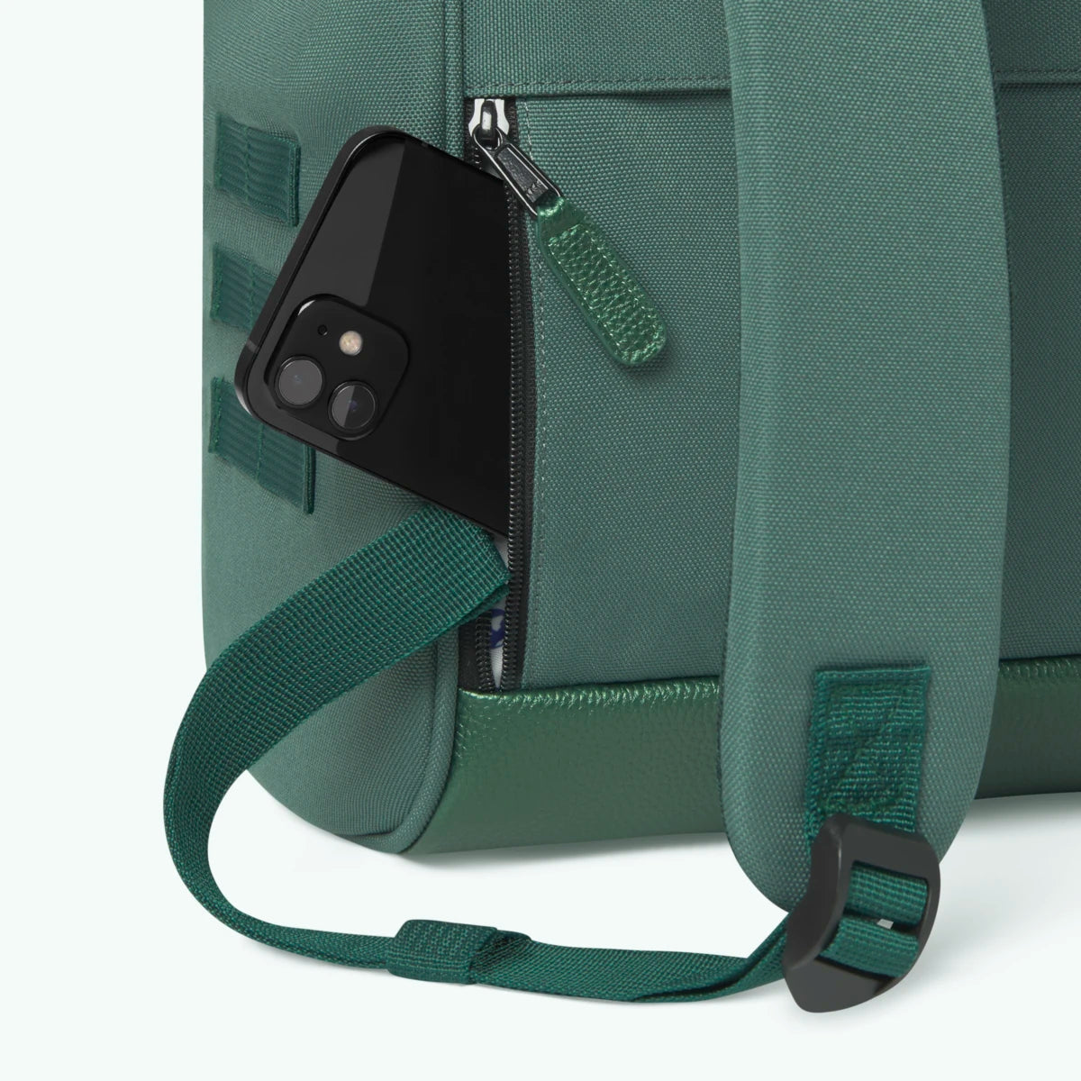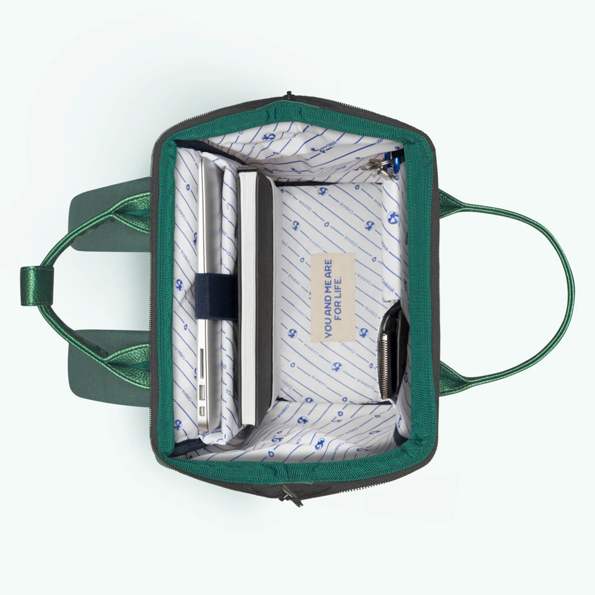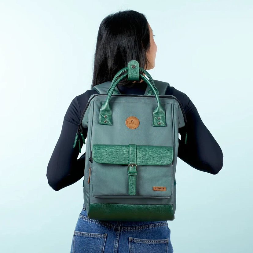 Ce sac est accompagné de 2 poches interchangeables : unie vert d’eau (Leon) + à motifs (Munich)