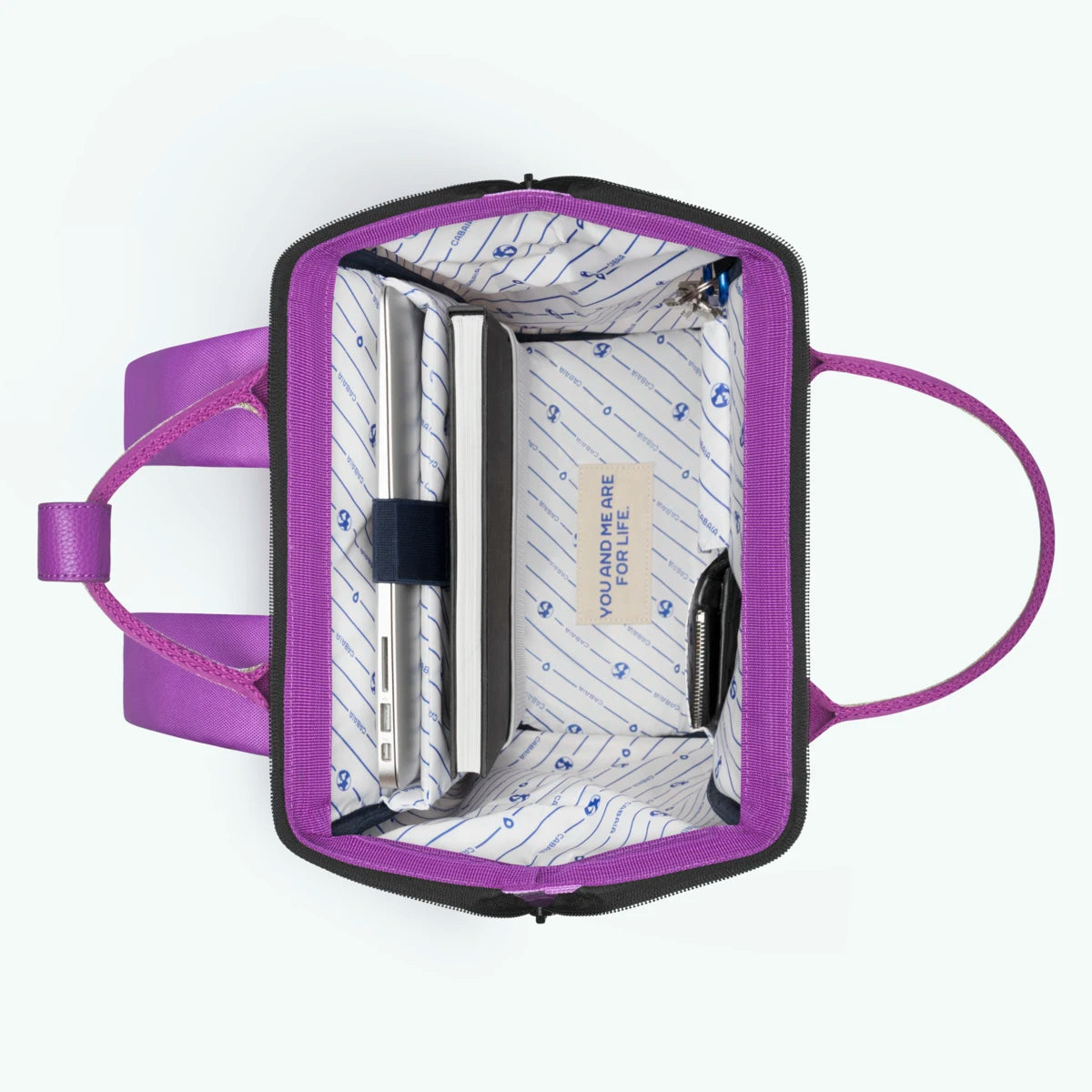Ce sac est accompagné de 2 poches interchangeables : unie violet (Nancy) + à motifs (Stockholm)
