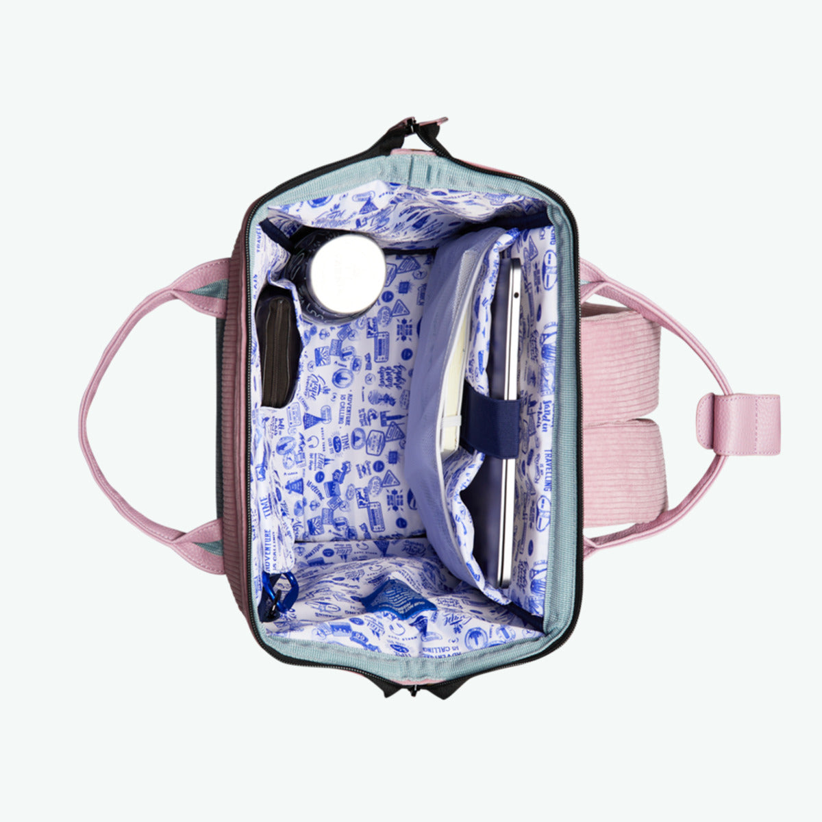Ce sac est accompagné de 2 poches interchangeables : rose à motif (Barras) + bleu clair à motifs (Kampielo)