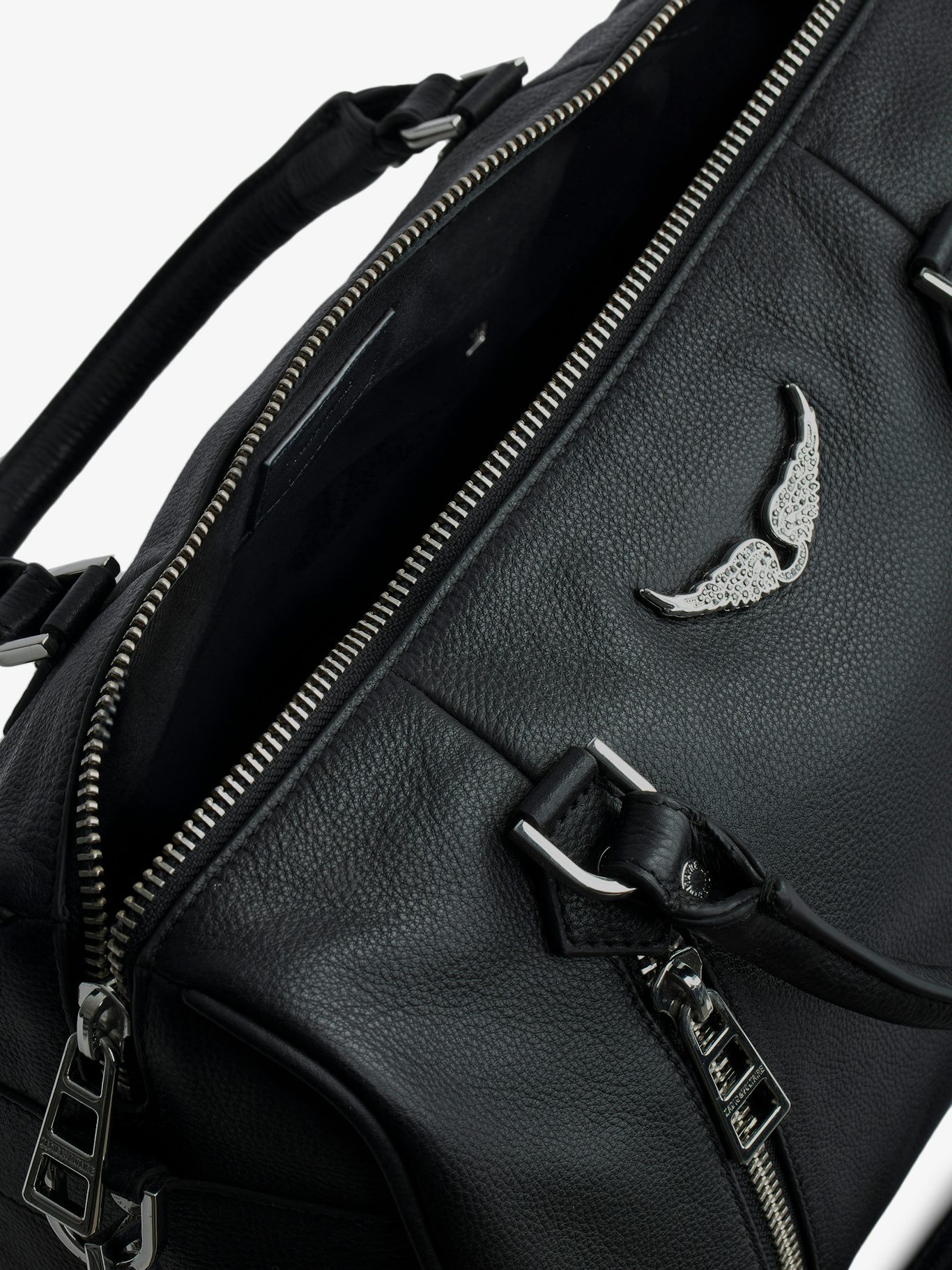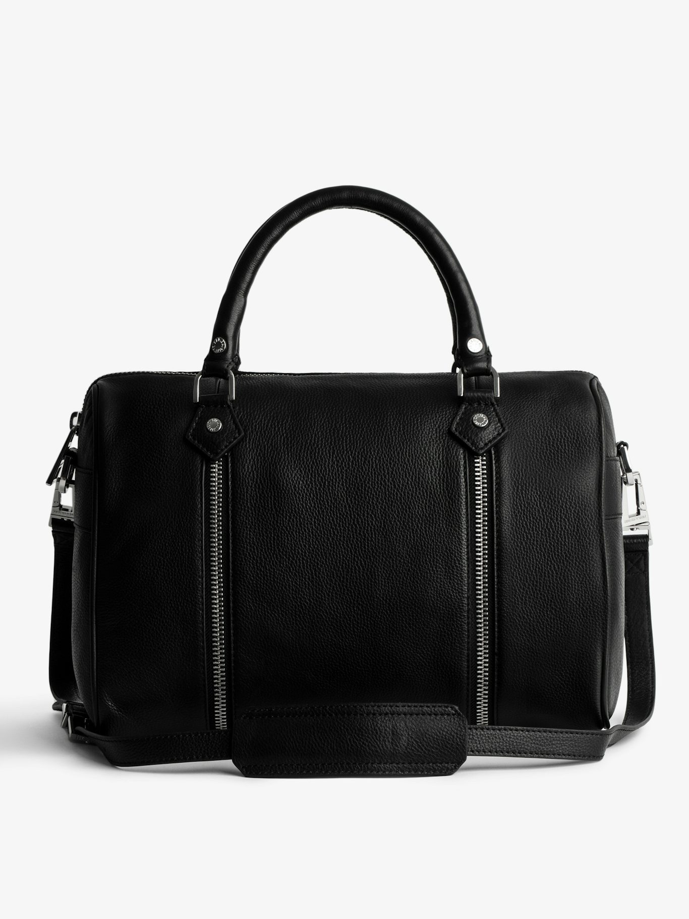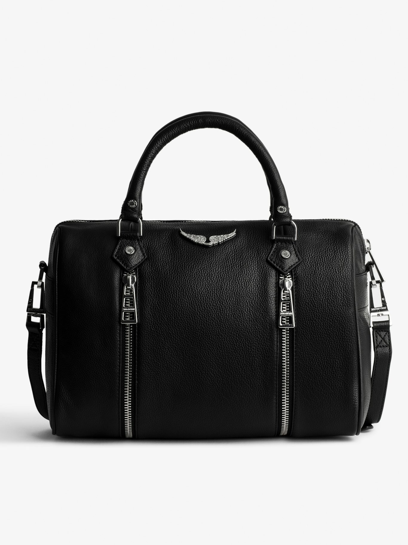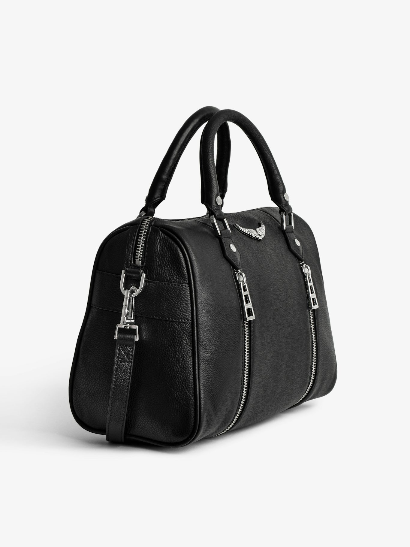 La nouveauté de la saison : ce sac est compatible avec les ailes « Swing your wings ». Interchangeables, elles vous permettent d’exprimer votre style et votre personnalité.- Sac bowling Sunny medium en cuir grainé noir Zadig&Voltaire Femme