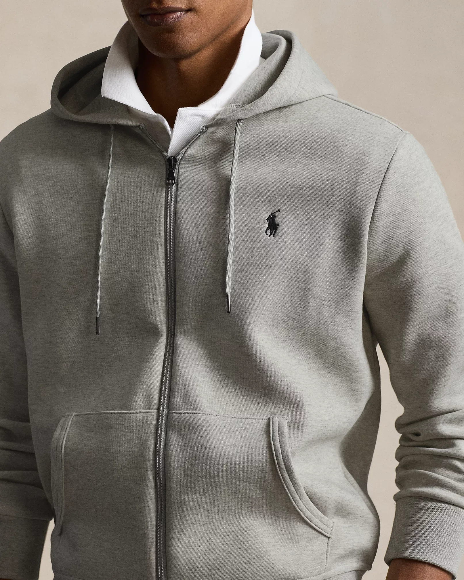 • Capuche à cordon de serrage. Devant entièrement zippé.